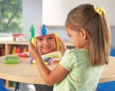 Help young children learn all about themselves with easy-to-hold, double-sided mirrors! One side is a regular mirror; the other side is a “fun mirror” that warps reflections. Set of 6 unbreakable, non-glass mirrors that measure 15cm L x 10cm H (6″ L x 4″ H) each. Ages 2+.