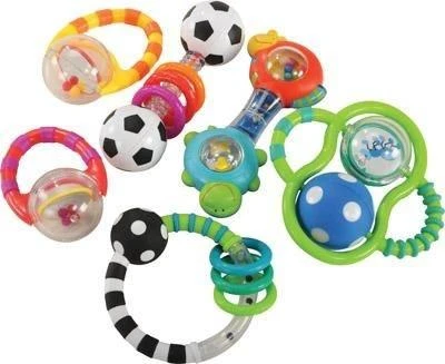 Invite babies to explore with this set of 6 rattles featuring bright colours, as well as spinning and light-up balls that will reinforce cause and effect relationships. Ages 3 months+.