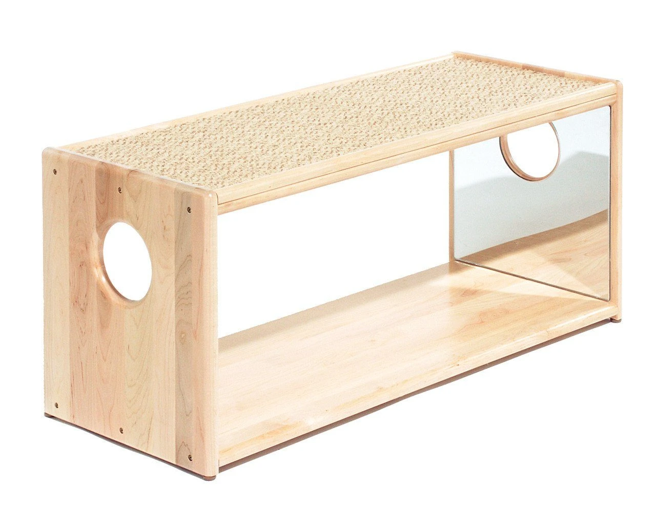 - The inside surfaces of the end panels are mirrors with holes for peeking through.