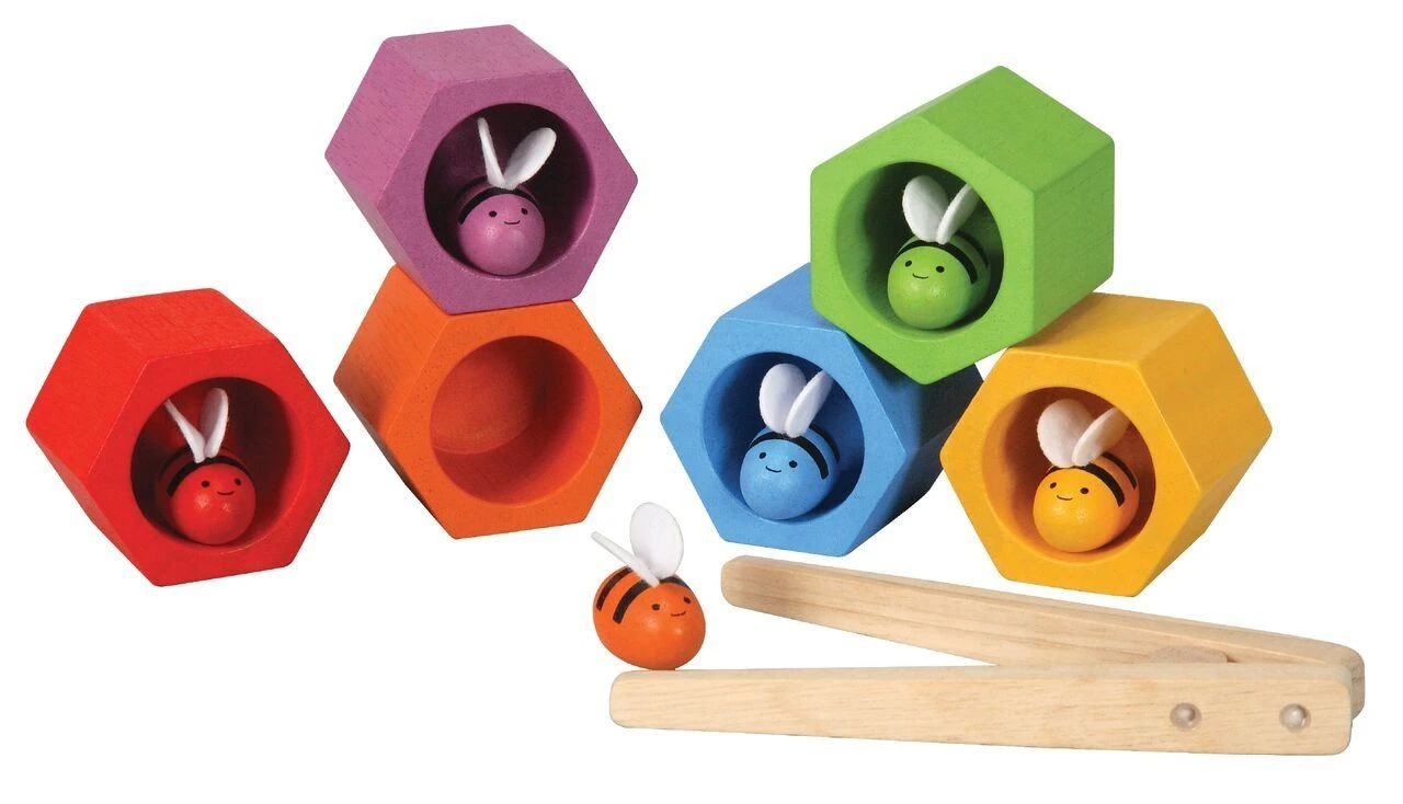 Help develop fine motor skills by matching the bee to it’s hive using the tweezers. Also reinforces colour recognition and counting. Ages 3+.