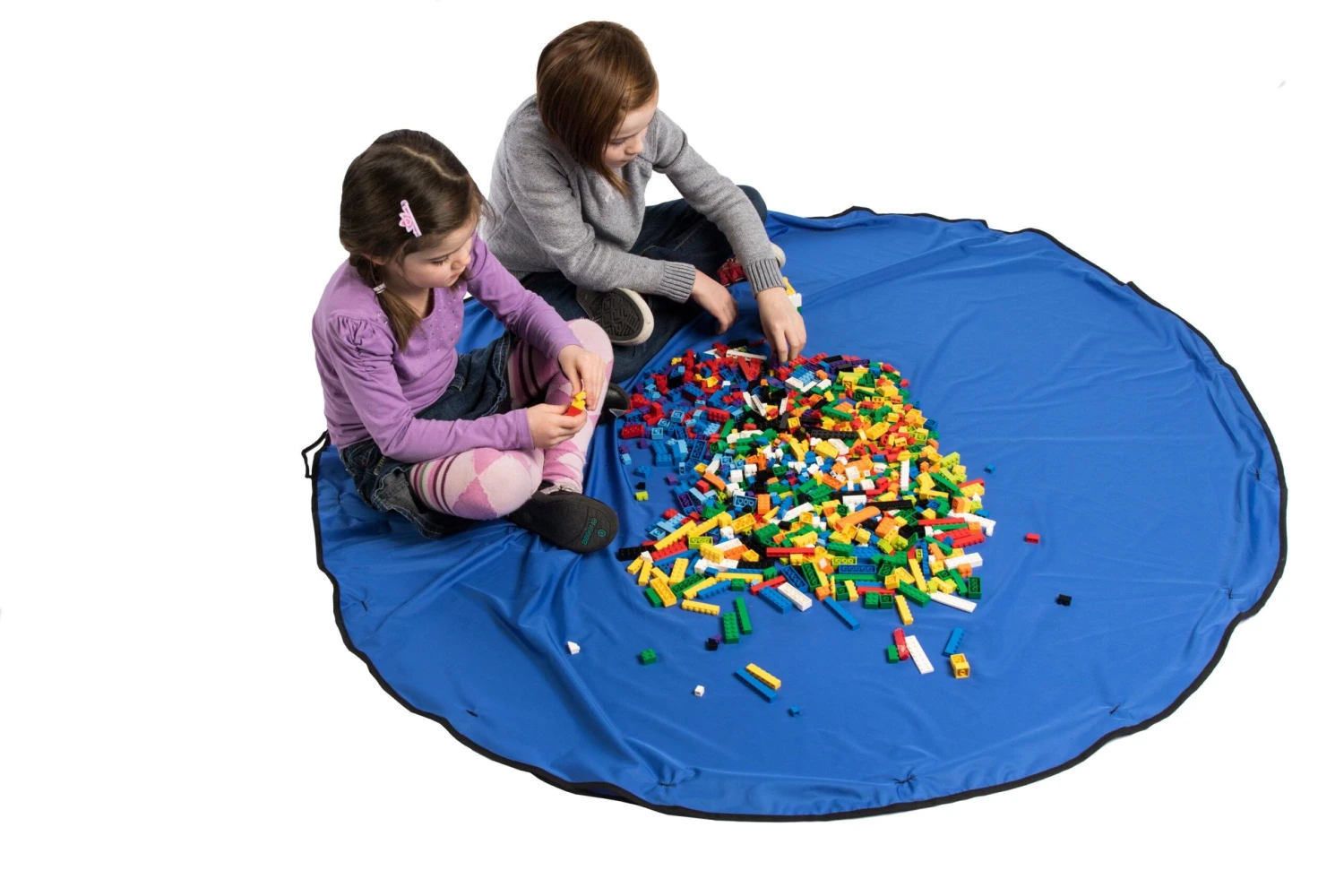 A portable play area for blocks and loose parts. Pull on the cords to easily create a bundle bag and round up loose parts. Machine wash and dry.