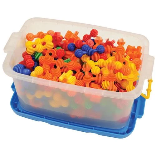 Endless construction possibilities, bright fluorescent colours, easy-to-connect pieces, all add up to fun. This 140 piece set consists of 5 different shapes in 5 assorted colours. Includes a sturdy, stack-able container that measures 12″L x 7″ W” x 6″H. Ages 3+.