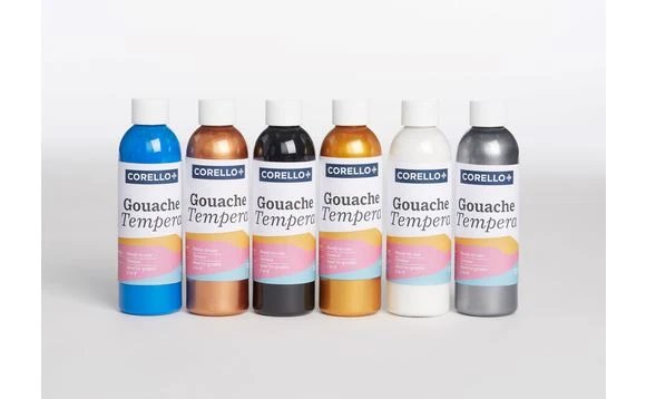 Ready-to-use non-toxic liquid tempera with good opacity and bright colours ideal for preschool and elementary classrooms. Includes a set of 6 bottles.