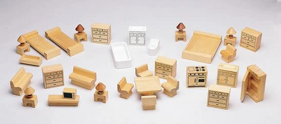 The complete set includes the Dollhouse as well as the 6-Room Furnishings also durably made of wood in a chunky design for small hands.