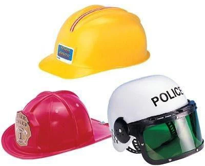 | Options | Fire Helmet, Construction Hard Hat, Police Helmet, Set of 3 |