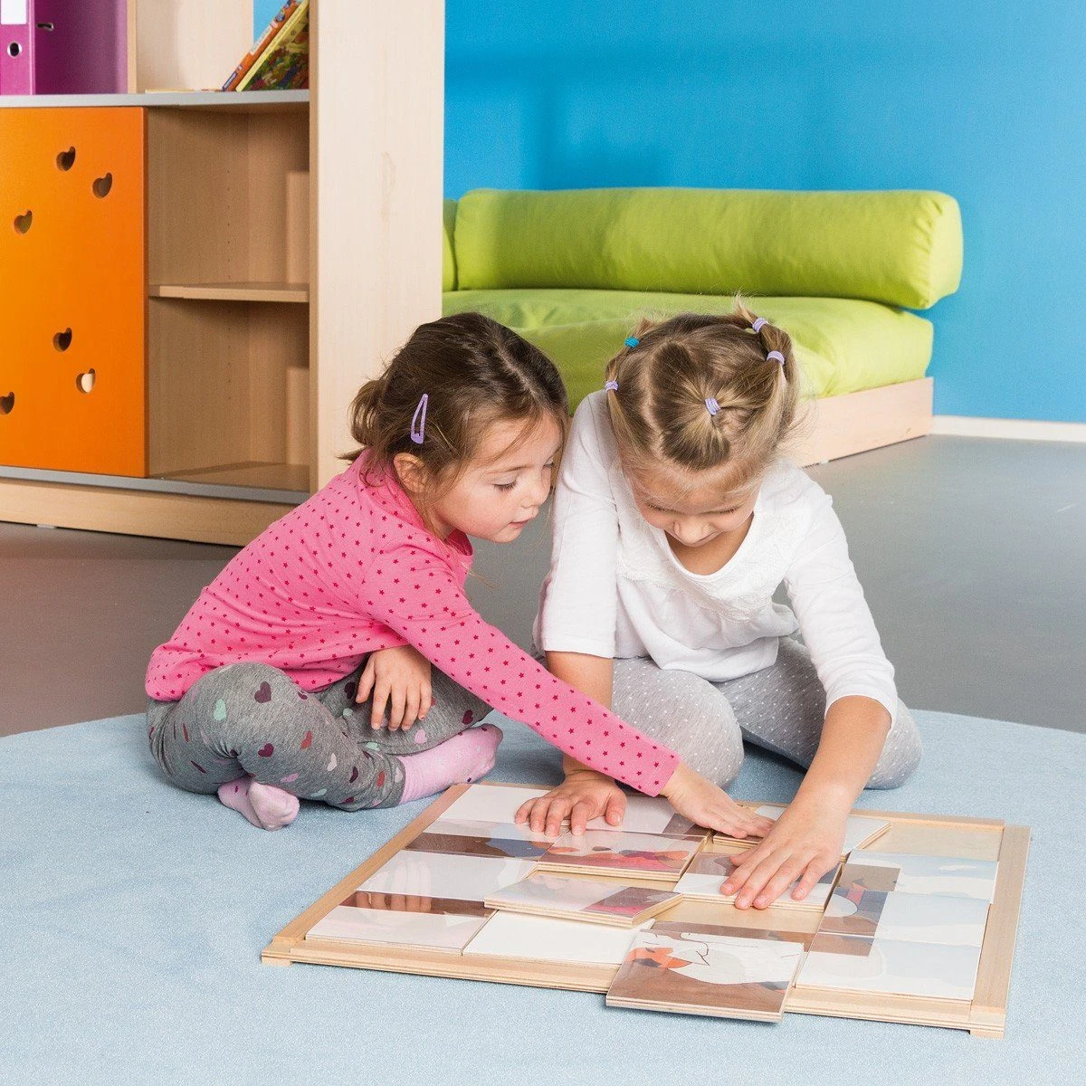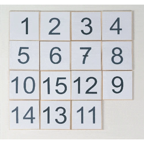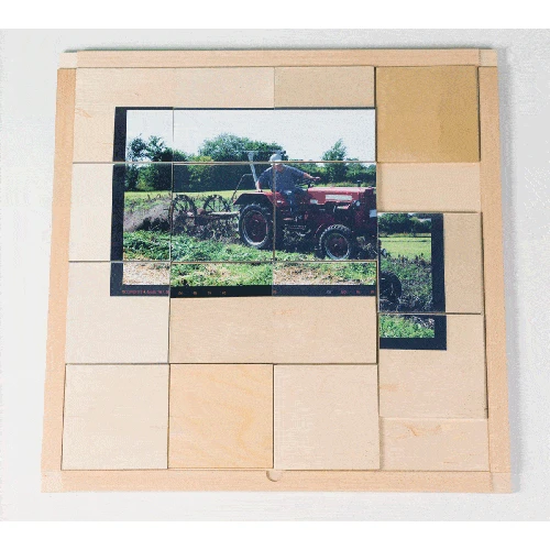 The 15 tiles wooden boards can be fitted with many different images: letters, numbers, colours, shapes, or as a puzzle for endless game combinations.Â