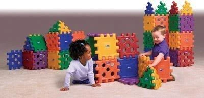 Children can create structures or even tunnels to crawl through with this colourful assortment of 32 grid blocks. Includes solid square blocks and ones with holes, as well as triangular blocks to create rooftops. Squares measure 30 cm x 30 cm (12″ x 12″). Ages 18 months+.