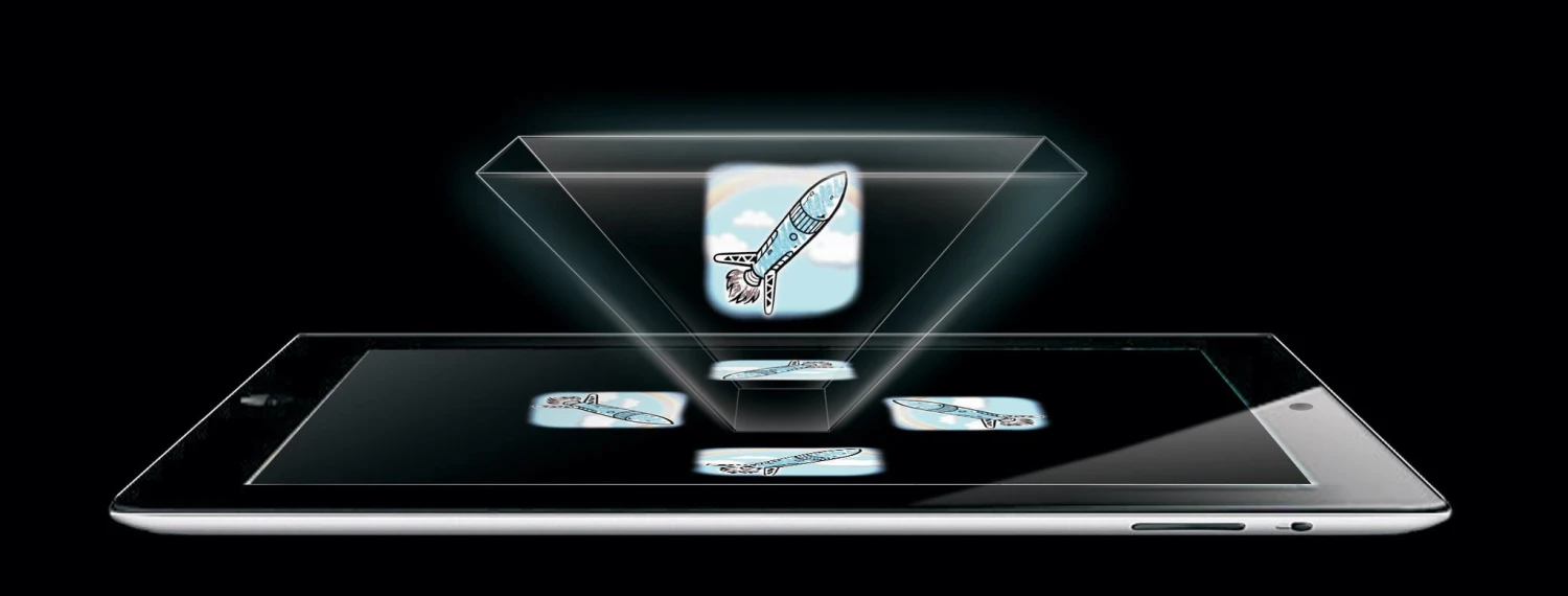 The app converts the image into a hologram with an animated background that can be viewed on your phone or tablet using the special plastic lens.