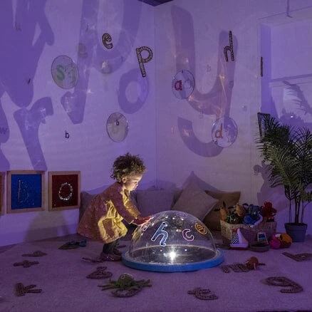 The rechargeable Illuminated Dome transforms walls and ceilings into a magical canvas of light and shadows. A unique versatile design for collaborative discovery play or independent sensory exploration.
