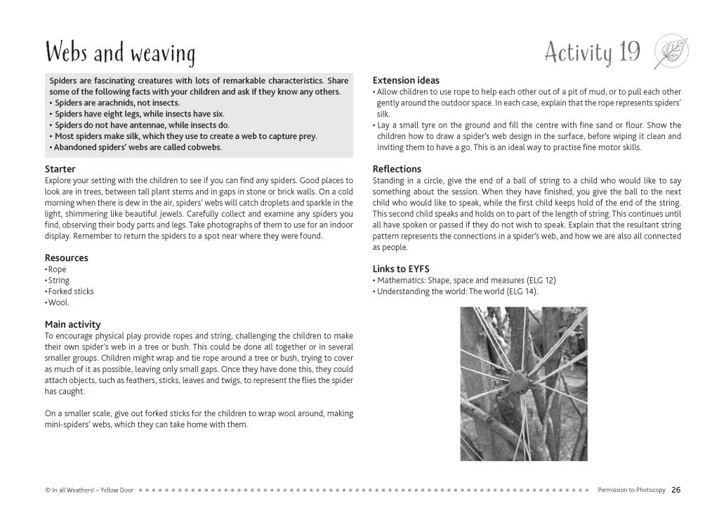The 50 activities will help you to embrace the rich possibilities of learning outside, whatever the weather and space available. T