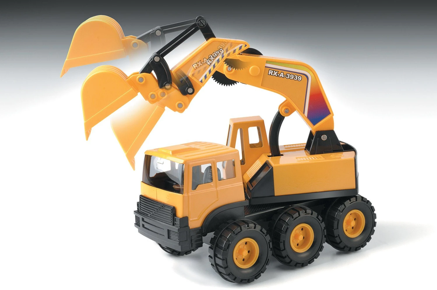 High-gauge pressed steel with plastic parts. Free-wheeling vehicle measures 38cm (15”)L with shovel fully extended. Ages 3+.
