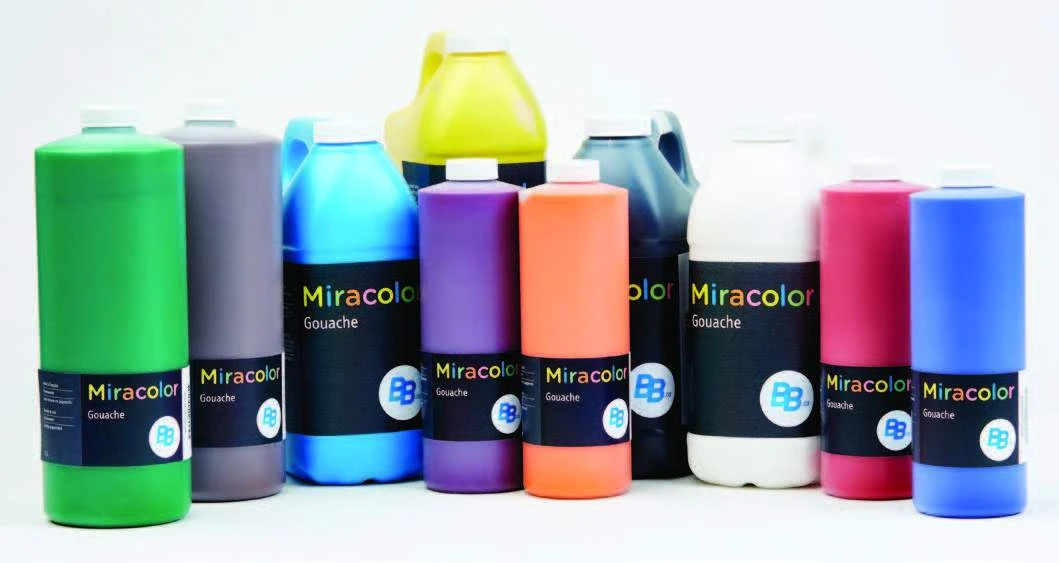 Miracolor Tempera paints come in 11 colours and three sizes: 500ml, 1L and 2L bottles.