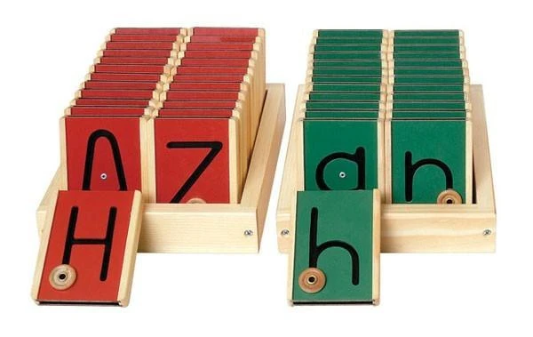 Practice tracing by placing the index finger of the writing hand or pencil on the eye of the grommet to easily follow along the path of the shape. Each set of 26 letters comes in a wooden storage tray.