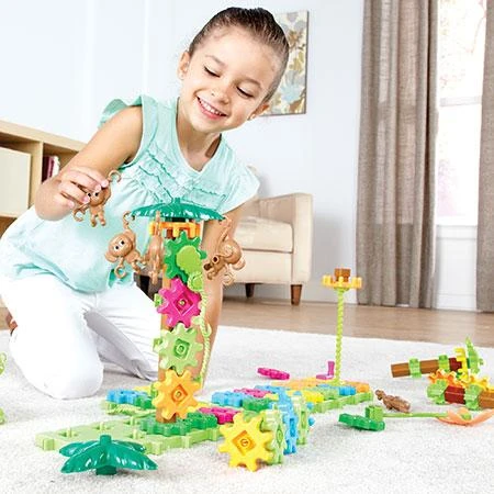 Bring the jungle to life with this colourful moving 136-piece building set. Monkeys fly through the palm trees by their tails, then spin, twist and turn. Kids develop their own “gear jungle” or use the easy-to-follow instructions. Ages 4+.