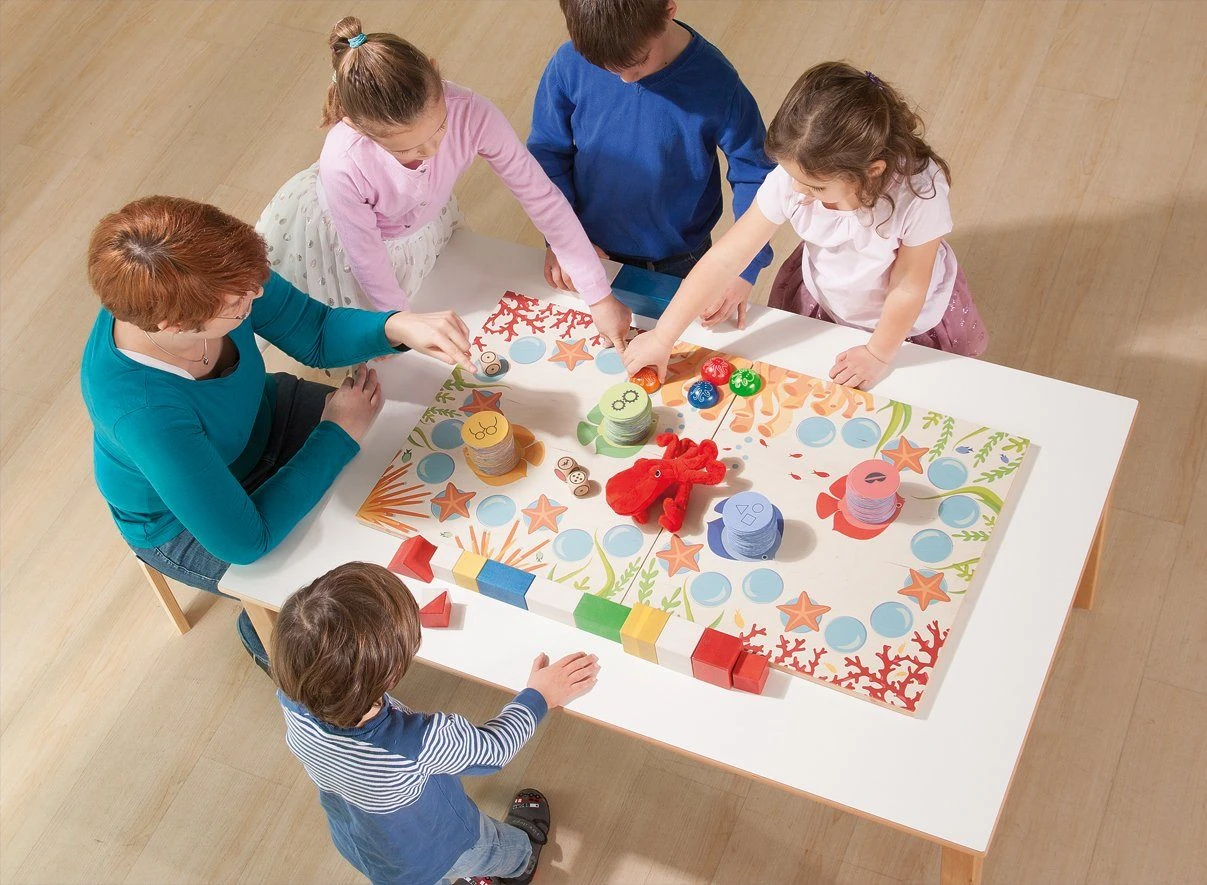 From Germany this dynamic, large format game explores coral reefs. Complete kinesthetic, language, math and social skill tasks with logic and strategy. Durable, open ended, enticing materials with leveled game play generates hours of play to learn.