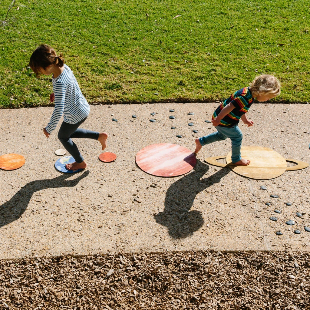 Sturdy, non-slip outdoor rubber mats with pictures of the solar system; 8 planets, sun & moon. Use indoors or out to explore astronomy, or gross motor physical games. From 9-81cm diameter (3½–32”).