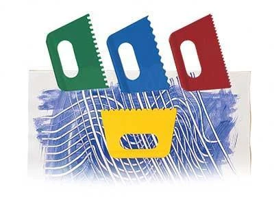 Scrape, swirl and smear the different patterns over wet paint to create fine lines and wide grooves. Pack of 4 scrapers in various designs.