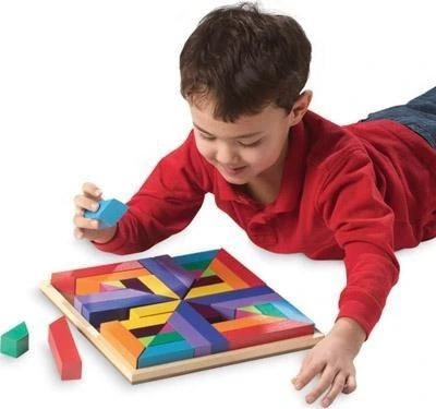 Create endless patterns with this high-quality 40-block set, which fits just-so into its wood tray. Vibrant colours and unusual shapes build spatial and artistic skills.