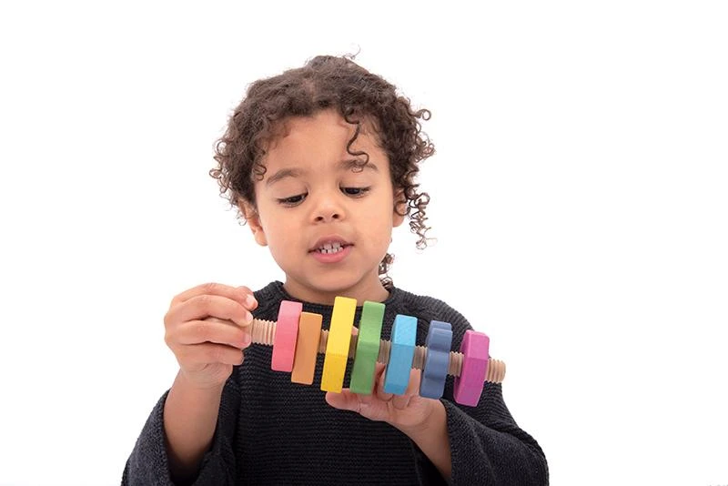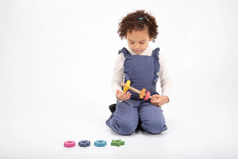 Keep the little ones entertained for hours with this giant bolt. It has 7 nuts that come in different shapes, sizes and colours. The shapes have increasing number of edges from a circle to an octagon.Ā AgeĀ 18+ mos.