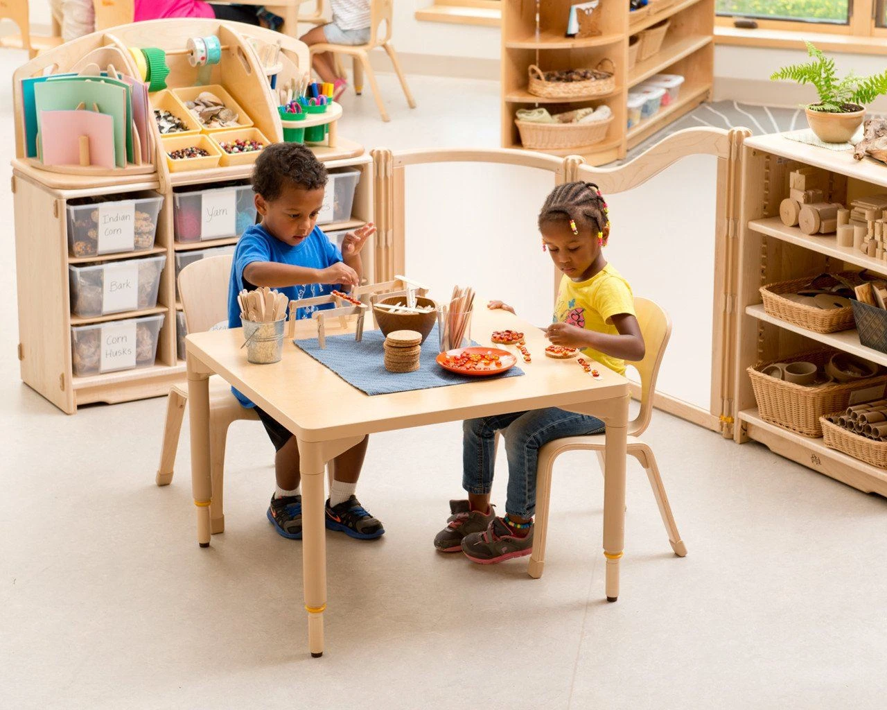Community Playthings (CP) furniture and toys are purpose built for early years classrooms with predominantly natural materials like maple hardwood. They are designed to realize an open-ended play-to-learn educational goals.