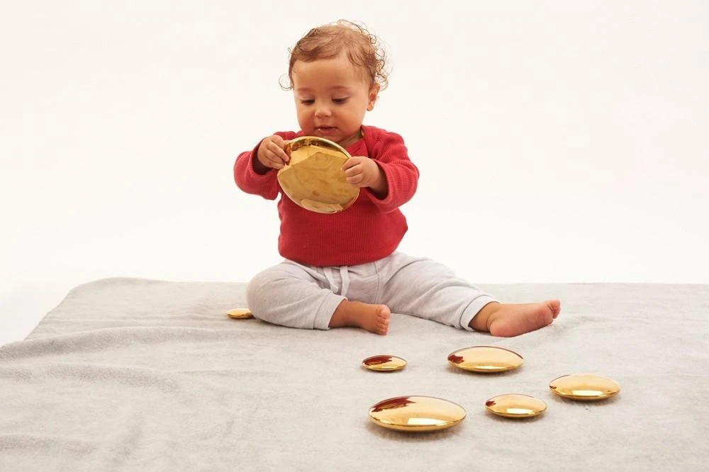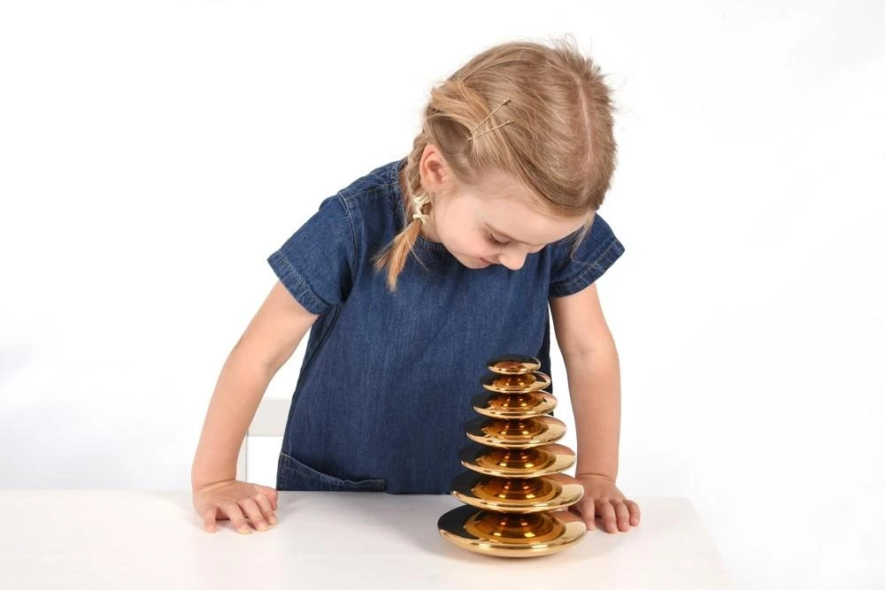 Having a metal construction makes these Sensory Buttons highly durable and with a deluxe feel. They are lightweight, smooth and compellingly tactile to handle. The hand finished golden mirror surface provides a slightly curved, coloured and distorted reflection which is fascinating for children to observe. Ideal for inspiring creative language, using in imaginative play and constructing fun wobbly stacking towers.Â