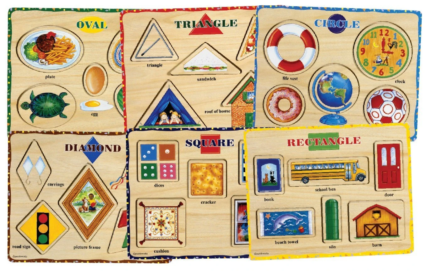 Children will learn to recognize basic shapes by matching the objects to the correct shapes and words on the puzzle. Easy to grip lift-out pieces are raised from puzzle board. Ages 3+.