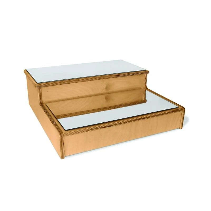 Mirrors are important tools that foster a young child’s self-awareness, self-esteem, intellectual curiosity and cognitive development. In an inventive twist, we applied safe, shatterproof acrylic mirrors on a variety of block shapes to encourage a first-mover’s mobility, coordination and confidence through exploration and play.