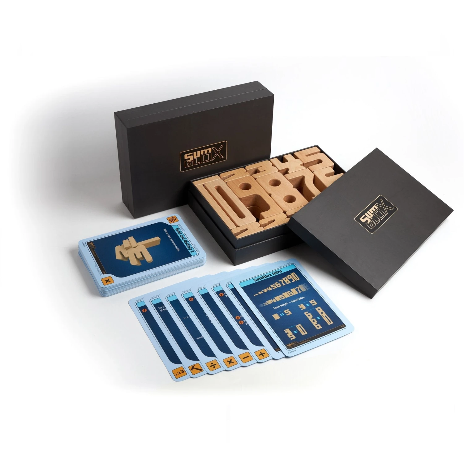 SumBlox are math building blocks whose individual size is proportional to the number value. Put a “1” block on top of another “1” block and it is the same height as the “2” block. Stack three “3’s” beside a “9” and you’ll notice they come up to the same level.