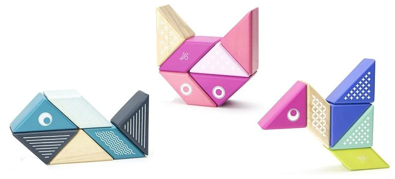 This set of three fun animals is easy to manipulate and take anywhere. Curiously attractive and perfect for open-ended and unscripted play. Mix and match to create all new imaginative creations or use the 6 blocks to turn the whale, hummingbird and kitty into other magical creations.