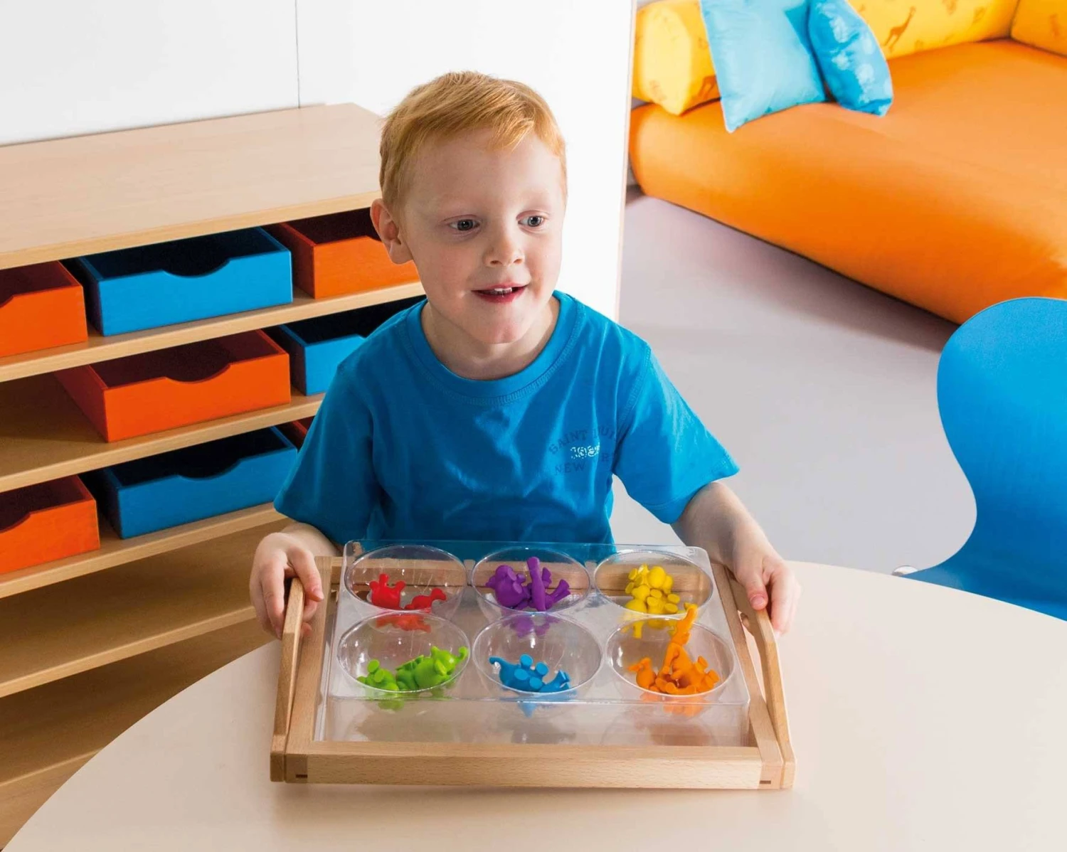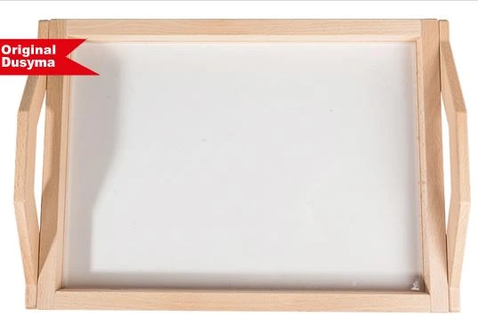 Solid beechwood tray with transparent base. Excellent for loose parts exploration or scientific examination of materials on mirror or light tables.