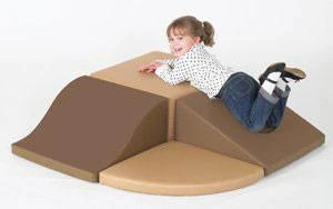 4-piece climbing unit. Universal hook and loop attachment allows the walnut brown and almond tan expanded vinyl foam pieces to be used in different configurations. Ages 6 months+.